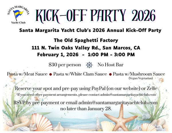Pre-pay using PayPal or Zelle. Contact admin@santamargaritayachtclub.com if you need to make other arrangements.